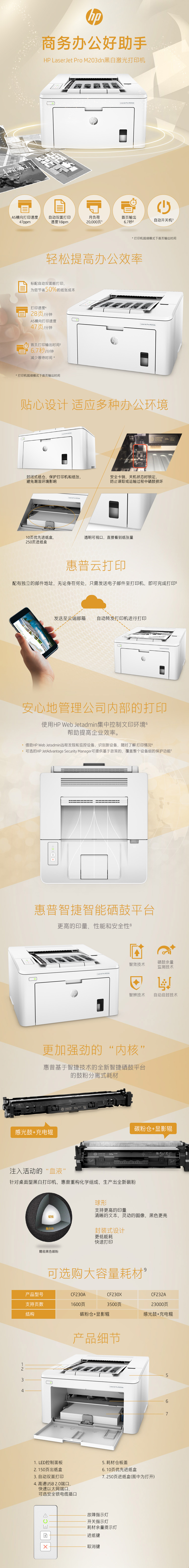 | 包装箱内包含的物品 | HP LaserJet Pro M203dn 打印机; HP LaserJet 黑色硒鼓(约 1000 页); HP LaserJet 成像鼓(约 23,000 页); 安装说明; CD-ROM 上的打印机文档和软件; CD-ROM 上的软件驱动程序和文档; 包含软件和电子文档的 CD; 电源线; USB 连接线 |