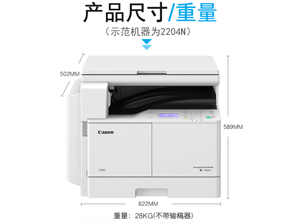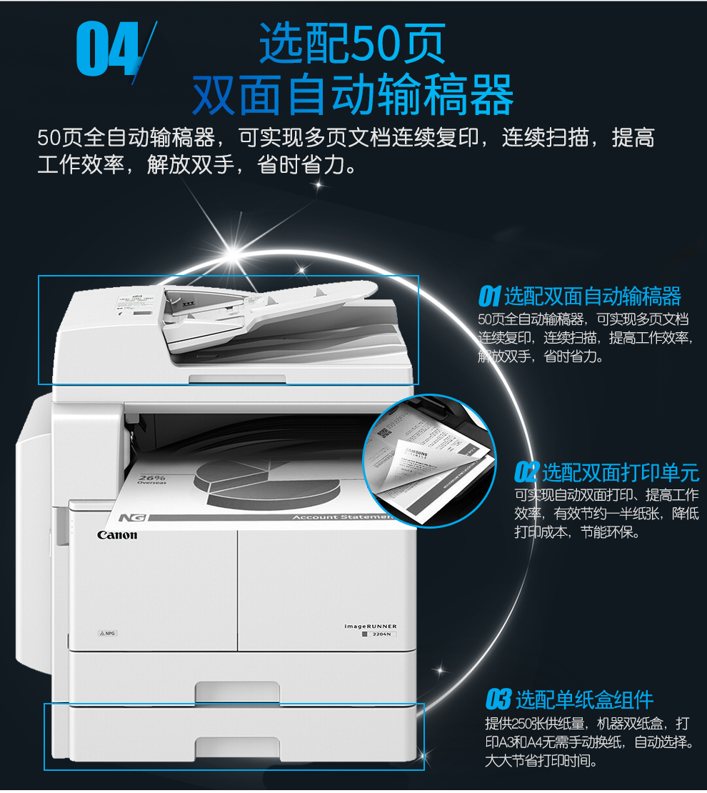 佳能(Canon)2204N/AD/L激光A3打印机一体机无线wifi复印机扫描 主机+输稿器+双面器 标配